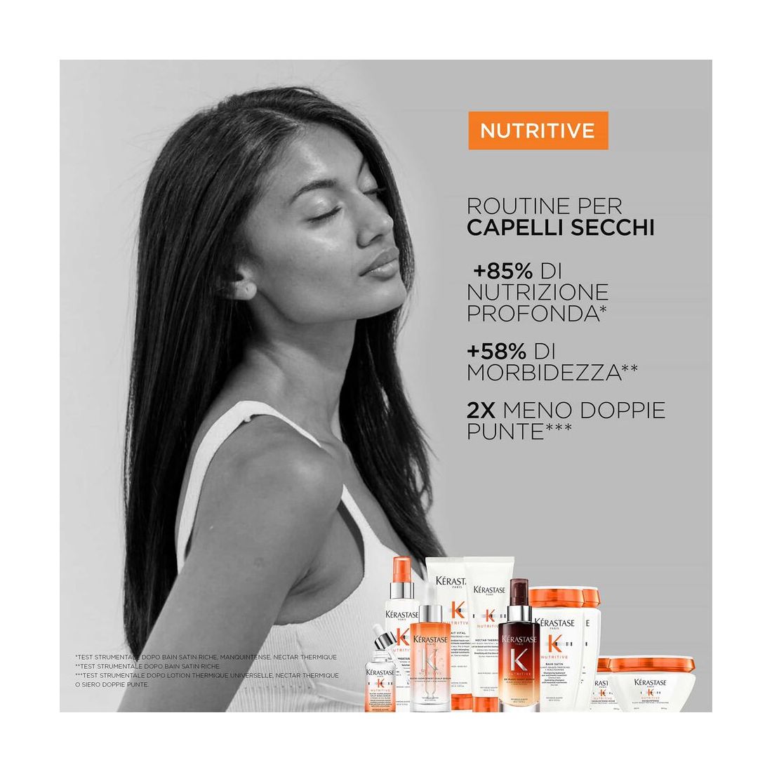 Shampoo idratante con nutrienti essenziali. Il Bain Satin della linea Nutritive di Kérastase è uno shampoo delicato e idratante per capelli secchi. I capelli secchi sono idratati e rinforzati.